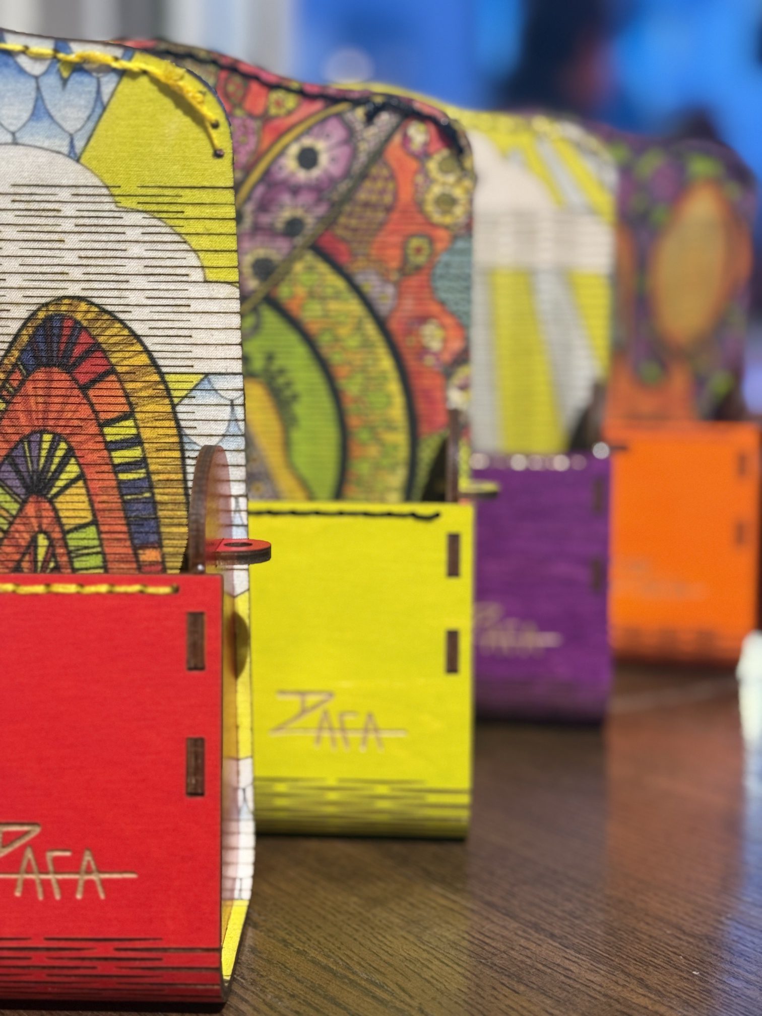 “We do tell people that we didn’t design them to be your everyday purse. However, it is definitely a statement piece going to a dinner party or an event,” said Robinson. “That’s really where a lot of people love what our pieces give them. We’ve got people that will have some of their favorite artist’s art inside their TimberTote and they are able to take that art with them out on the town.