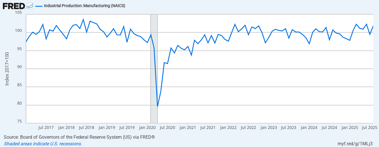 Next, let’s look at industrial production in the manufacturing sector.