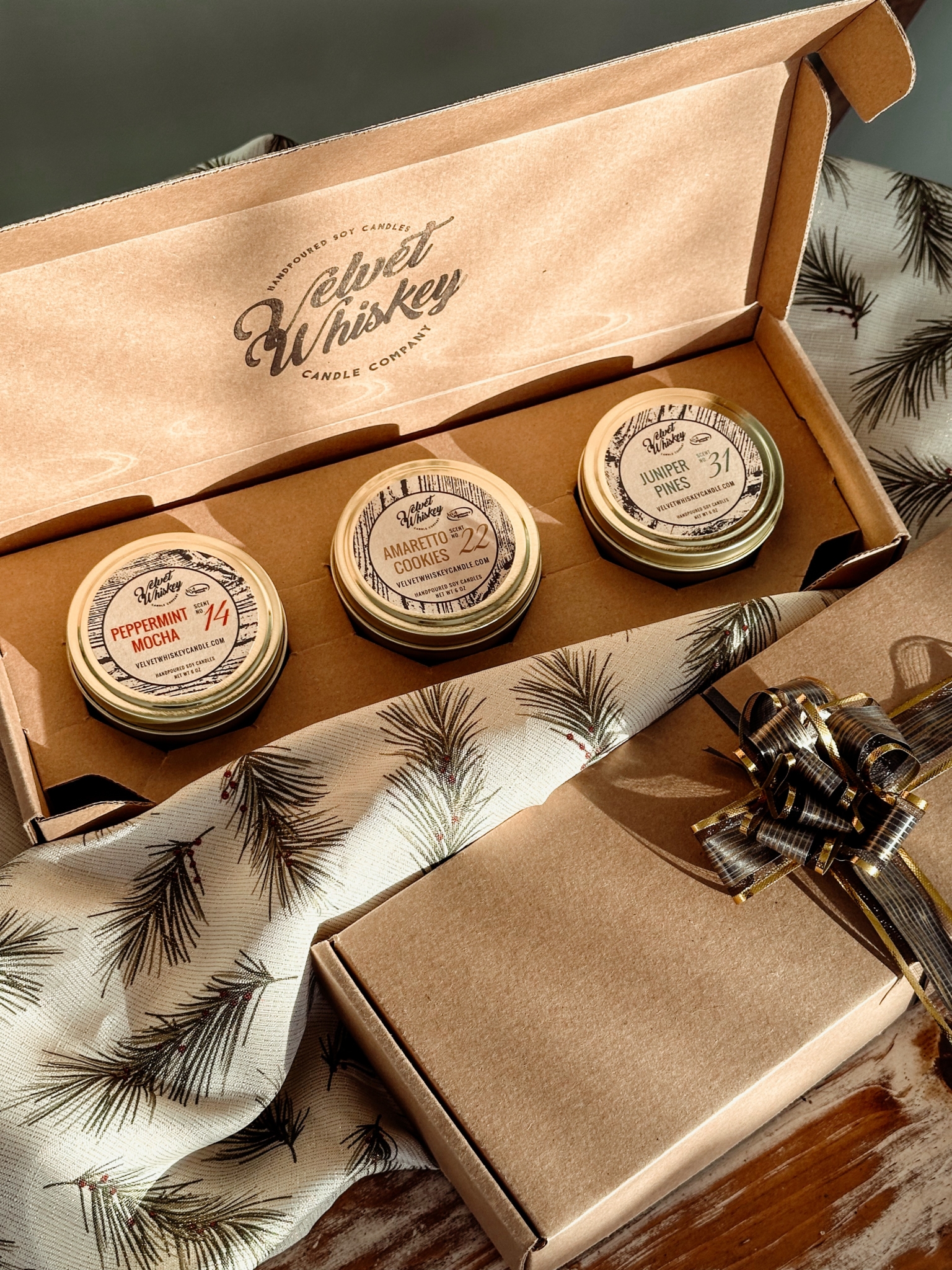 Treat your senses with a Velvet Whiskey candle in gorgeous custom-blended scents, like Bluegrass Bourbon, Peppermint Mocha or Brandied Cranberry, and give your candle the stage it deserves by pairing it with a holder crafted from authentic Kentucky bourbon barrel staves — all made in Southeastern Kentucky. Velvet Whiskey sources the natural soy for its candles from American farmers.